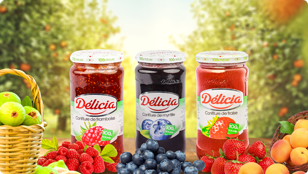 Onctueuse, sans additifs et sans conservateurs, la confiture Délicia est 100% naturelle à base de fruits sélectionnés avec soin pour vous offrir le meilleur de la nature.